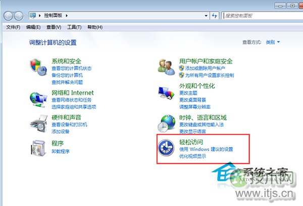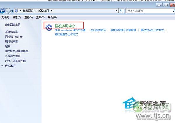 2、关功在控制面板设置窗口里点击“轻松访问中心”