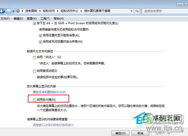 4、大镜把“启用放大镜”前面的自启勾去掉