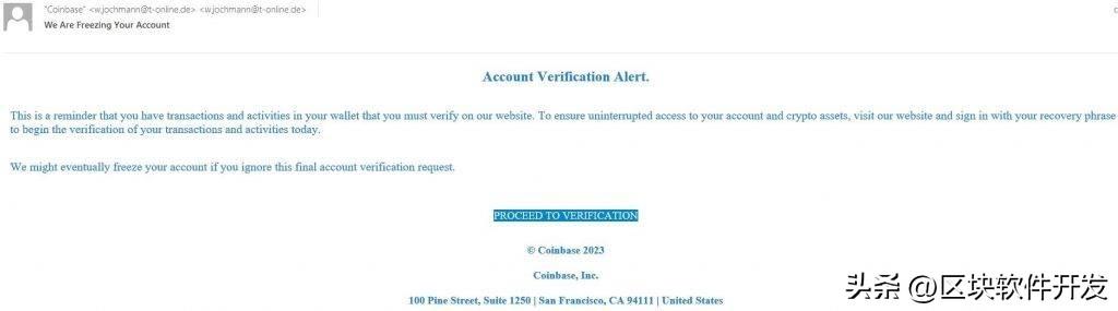 针对热钱包用户的典型网络钓鱼骗局如下:攻击者发送来自知名加密货币交易所的电子邮件,要求用户确认交易或再次验证其钱包。