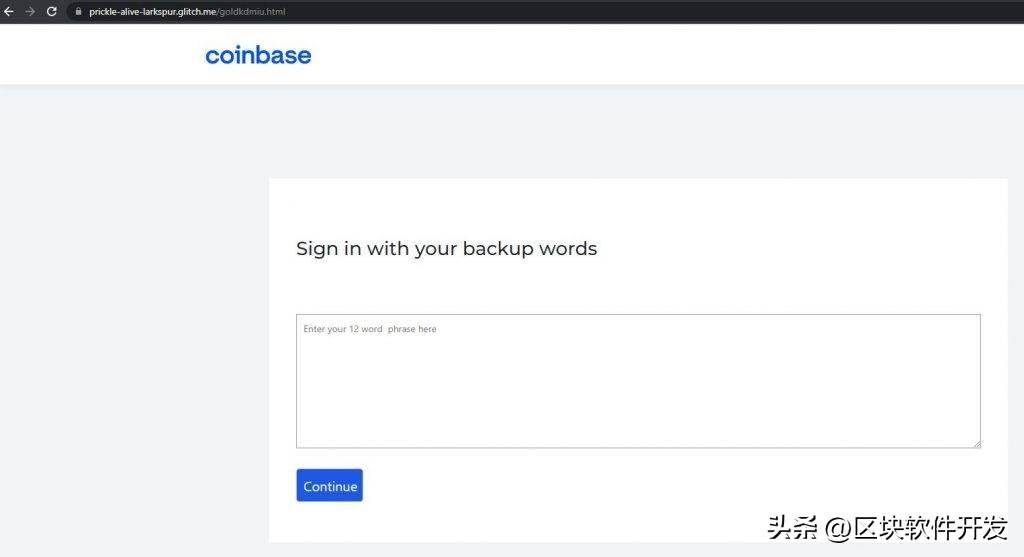 这类骗局相当简单,没有软件或社会工程技巧,通常针对技术小白用户。种子短语输入表单通常有一个精简的外观,即只有一个输入字段和一个加密交易标志。