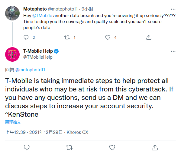 据报道,被窃在 12 月的b2b供应网再遭网漏洞中暴露的信息不那么敏感(文件中说那些被调换 SIM 卡的客户已经重新获得了访问权),而且范围可能没有那么大。T-Mobile Help 官方发布推文:“T-Mobile 正在立即采取措施,帮助保护所有可能面临这一网络攻击风险的人。如果你有任何问题,请给我们发送DM,我们可以讨论如何提高你的账户安全”。云南idc服务商