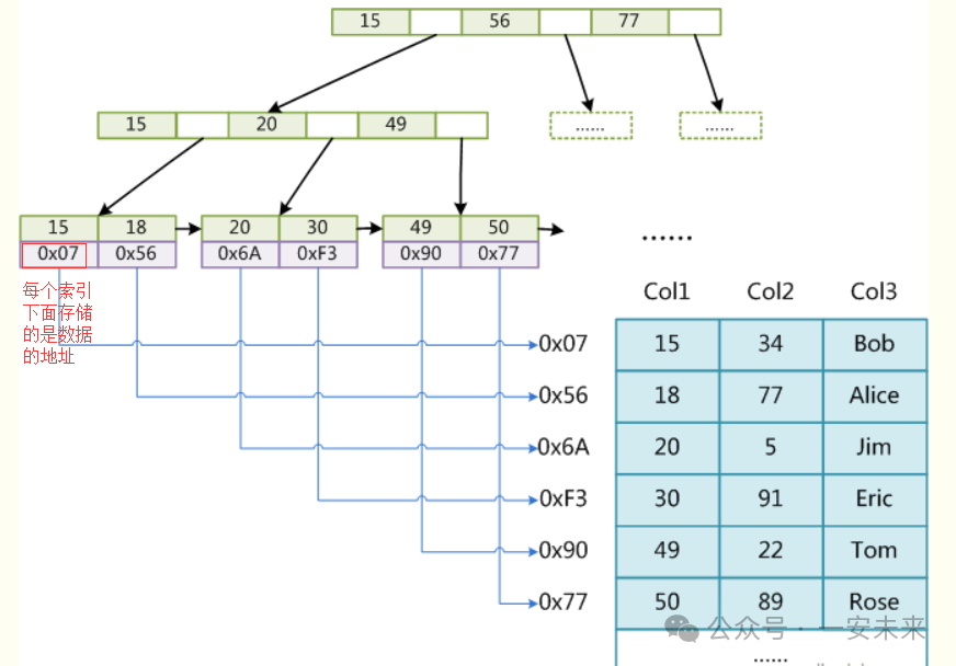 如在上述员工表中,若针对员工年龄创建非聚簇索引,其叶子节点会存储年龄值及对应的员工ID指针。这意味着通过非聚簇索引查询时,先找到索引值对应的主键ID,再凭借主键ID去查找所需数据,此过程即为回表操作。