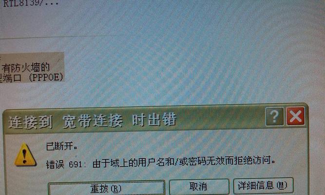 您的当前位置:首页 >域名 >解决电脑691错误的方法与技巧(详解电脑连接错误691的处理步骤及注意事项) 正文