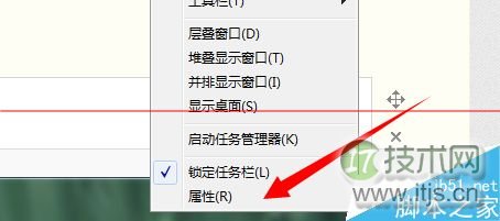 1、案已右键点击桌面下方【任务栏空白区域】,更改选择属性选项