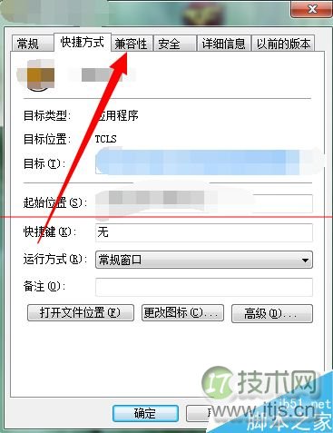 2、在弹出的属性界面,点击上方【兼容性】选项