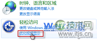 2、然后在控制面板中点击轻松访问下的关闭果让“优化视频显示”项;