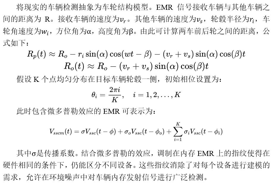 除了动态特征和静态特征外,实际检测到的结果中还包含微多普勒效应。云服务器车辆独特的轮胎组件和车身结构在行驶过程中会引发独特的微运动。这些微运动(不仅仅是车辆的整体移动,还包括底盘部件的振动、旋转和速度变化)会在接收到的无线电信号中引发可测量的多普勒频移,称为微多普勒效应。通过信号处理技术对车辆内存电磁EMR中的微多普勒特征进行准确分析,生成微多普勒特征,进而对复杂信号环境中的车辆发射的EMR信号进行区分,并根据它们的动态特征识别不同类型和型号的车辆。具体分析方法如下: