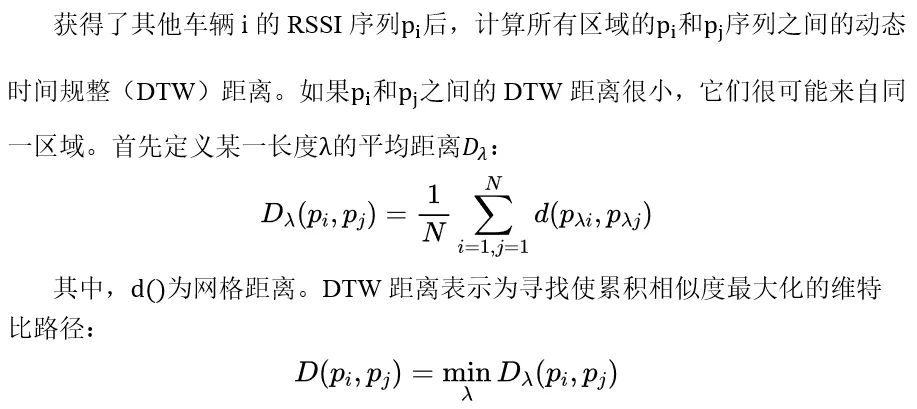 然后,使用每个区域的预先测量的RSSI曲线作为初始基线,与捕获的内存EMR信号的RSSI曲线进行分类训练。在此过程中,区域划分采用一位有效编码,最终将内存EMR信号标记在某个感知区域上。分类模型选择支持向量机(SVM),由于信号的多径效应和不可预见的遮挡,复杂的自然驾驶环境的RSSI值是不稳定的。然而,对于不同类型的驾驶威胁,RSSI曲线的变化趋势相对稳定。通过计算DTW距离,可以得到目标车辆的移动情况来判断危险。此外,初始基线样本量可能会很大,这对于原始结构的SVM分类器来说是一个不可忽视的挑战。DTW不需要大量的数据样本,但它需要存储所有的训练数据,空间占用和测试时间消耗随着训练数据量的增加呈现线性增加。论文中设计了一个基于DTW的特定核函数以避免初始训练数据的不足。从长远来看,基于DTW核函数的SVM分类模型可以避免高占用率和耗时性的缺陷。我们将其定义为PRDT-SVM,公式如下: