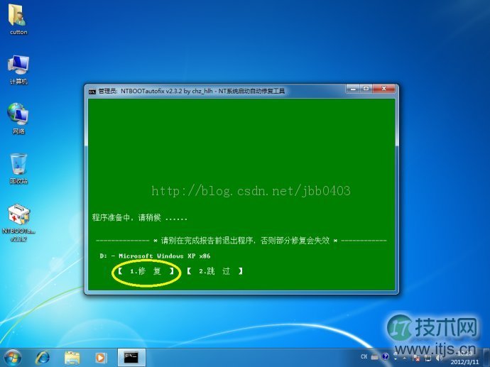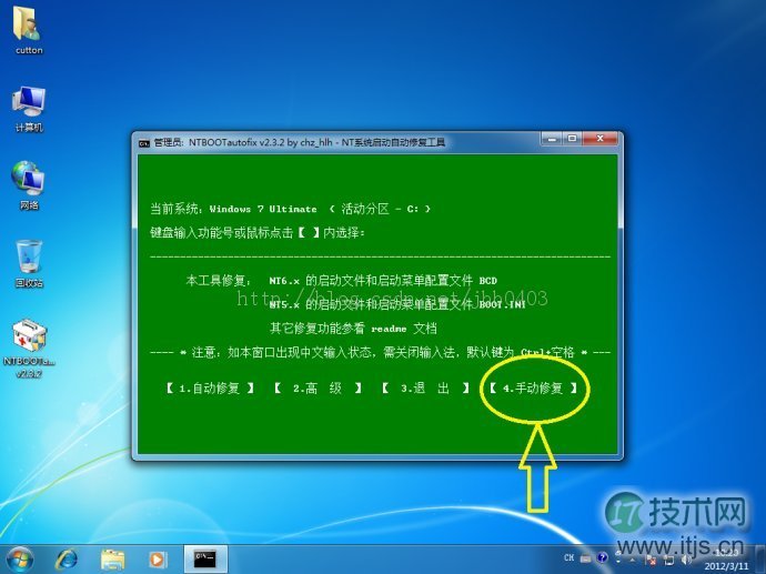 后来找到一个差不多,菜单我就按照这个办法来了,安装前面的重择启都直接省略掉,装完xp重新进入Windows 7后,无选我就直接下载NTBOOT这个软件,动项并点手动修复(一开始下载的菜单是2.0.X版本的,不带手动修复的服务器托管,后来下载的2.5.7版本的就有了)