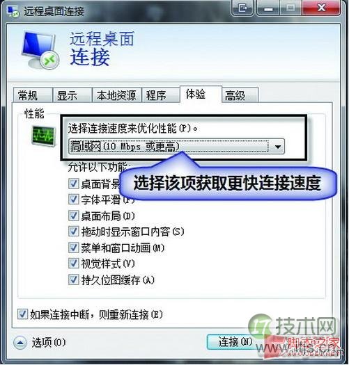 切换到“显示”选项可设置远程计算桌面的分辨率,在“本地资源”选项中可设置远程计算机的音频、键盘、打印机等属性,在“程序”选项中可设置连 接到远程计算机时,自动启动远程计算机中的某个程序,在“体验”中可设置连接速度,取消某些远程计算机的设置等,假如感觉连接速度慢,可取消远程计算机的 桌面背景等功能。服务器租用
