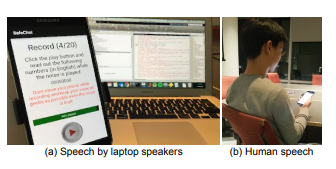 安全威胁模型所基于的数据集是TIDIGIT。TIDIGITS的语音音频由运行SafeChat的手机旁边的一台笔记本电脑播放。测试参与者被要求读一个随机生成的8位数字。